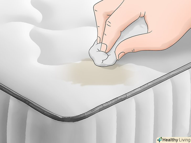 Промокніть матрац, щоб видалити залишилася рідина. після того як ви знімете простирадла, візьміть суху ганчірку і промокніть нею матрац, щоб вона ввібрала просочилася рідина. Не тріть при цьому мокру пляму. Акуратно промокніть забруднене місце, так щоб рідина не поширилася навколо. [3]- Для цієї мети добре підійде стара ганчірка, яку Ви зможете потім викинути.