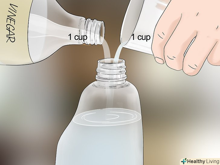 Змішайте воду і білий оцет в пропорції 1:1. якщо на матраці залишилися плями від блювоти, вам знадобиться спеціальний засіб для чищення. Візьміть пульверизатор, змішайте в ній 1 стакан (240 мілілітрів) води і 1 стакан (240 мілілітрів) білого оцту і як слід струсіть пляшку, щоб вийшла однорідна суміш. [7]- Для більшої ефективності можна додати 1 чайну ложку (5 мілілітрів) рідкого засобу для миття посуду. Використовуйте засіб без зволожуючого дії. [8]