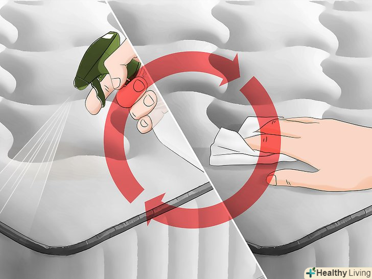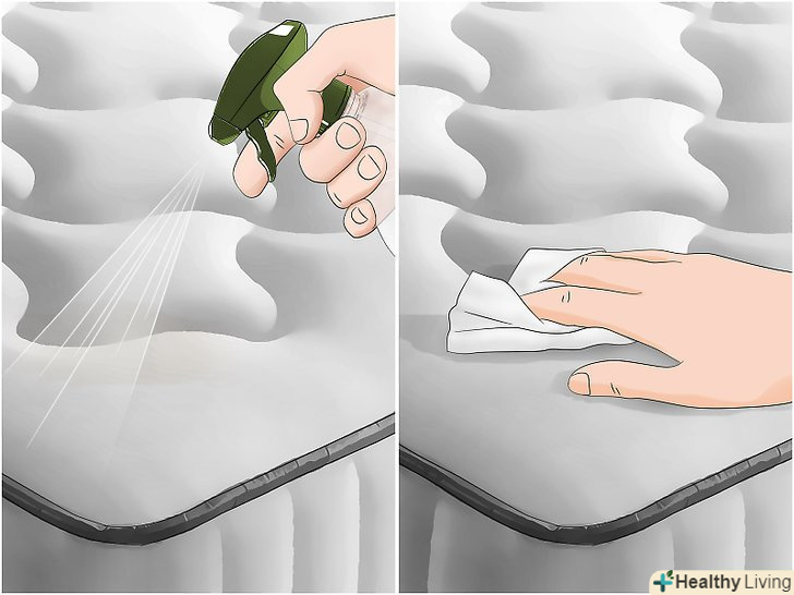 Використовуйте медичний спирт, щоб убити мікробів. навіть після того як ви виведете пляму від блювоти, на його місці можуть залишитися шкідливі мікроорганізми. Коли матрац висохне, побризкайте на очищене місце медичним спиртом, щоб знищити мікробів. [12]- Замість медичного спирту можна промокнути матрац неароматизованим засобом для дезінфекції рук.