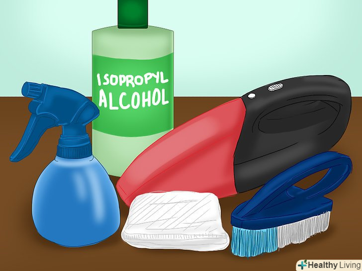 Дістаньте необхідні чистячі засоби. основним миючим засобом буде виступати ізопропіловий (протиральний) спирт або будь-який інший чистий спирт, наприклад, горілка. [2] крім того, якщо на вашій меблів стоїть позначка «W» або «SW», ви можете використовувати слабкий розчин з води і мила або миючого засобу. Проте, після такої чистки на мікровелюрі можуть залишитися водні розлучення, [3] тому краще використовувати спирт. Крім миючого засобу, вам також знадобляться: [4]- Чистий і порожній розпилювач