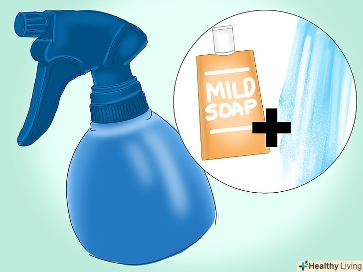 Наповніть розпилювач миючим засобом. використовуйте спирт для будь-яких меблів, або, якщо хочете (для меблів з міткою «W» І «SW»), розмішайте в 1 літрі води Близько 15 мл м'якого рідкого мила або миючого засобу. Гарненько розбовтайте розчин.