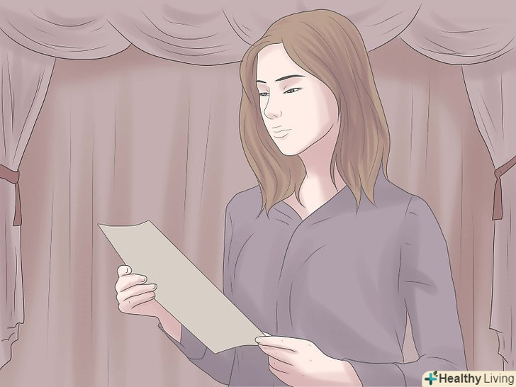 Виберіть монологи з п'єс. не буде нічого страшного, якщо ви використовуєте нову п'єсу або що-небудь, що слухачам незнайоме, однак потрібно вибрати уривок з дійсно існуючої п'єси і як слід віднімати всю п'єсу, не тільки сцену або монолог, який ви готуєте до прослуховування. Під час репетиції сцени, виберіть три абсолютно чітких способи виконання і в усьому їх дотримуйтеся. Якщо у вас виникають сумніви, спростіть спосіб подачі.