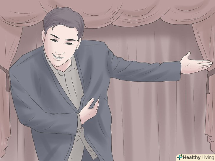 Будьте впевнені в собі, входячи в приміщення, де проходить прослуховування.якщо вам простягають руку-потисніть її. Дивіться людям в очі, коли представляєтеся. Представтеся і повідомте, який саме номер ви будете виконувати і хто його автор. Потім розкажіть, яку зі сцен ви виконаєте першою.