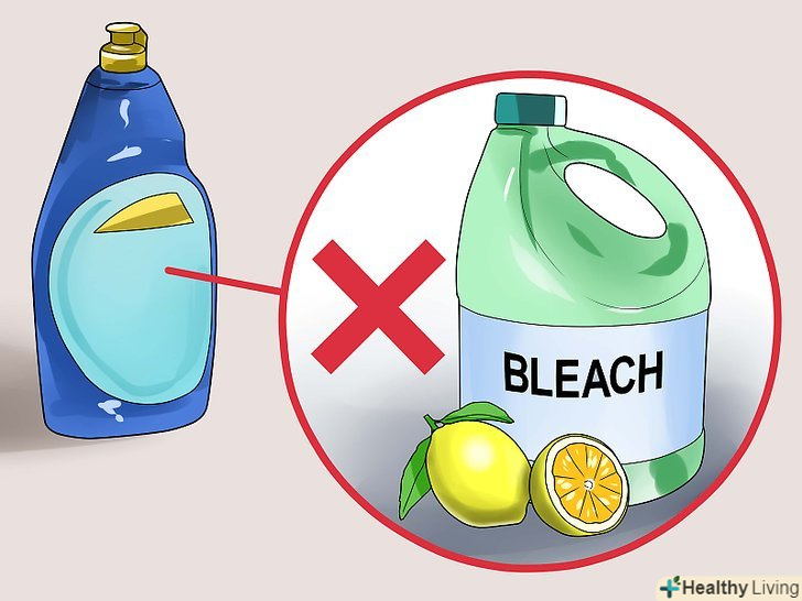 Використовуйте м'який рідкий миючий засіб, який не містить лимон або відбілювач. Візьміть саме м'який рідкий миючий засіб, так як порошок може бути надто зернистим і жорстким для порцеляни. [4] ні в якому разі не використовуйте в посудомийній машині миючий засіб, який для неї не призначений, інакше ви ризикуєте зламати посудомийну машину, а також залишити всередині неї і на посуді плями, які неможливо видалити.- Не використовуйте рідкі миючі засоби, які містять екстракт лимона або відбілювач, так як кислоти в них занадто агресивні для порцеляни. [5]