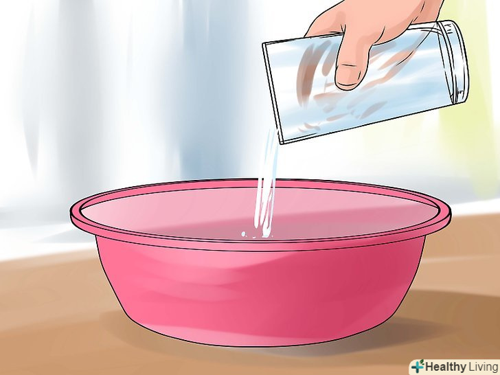 - Таблетки аспірину необхідно попередньо подрібнити. Візьміть 3-4 таблетки і змішайте їх у мисці з теплою водою. Додаткова інформація міститься в статті Як видалити плями від поту за допомогою аспірину .