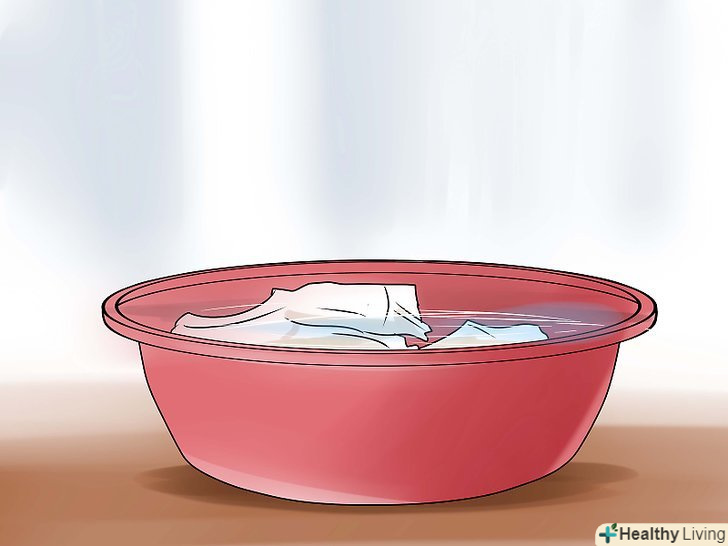 Налийте рідкий розчин у відро або будь-яку іншу досить велику ємність, щоб в неї помістилася вся річ. звичайно, необхідно замочити тільки ділянку з плямою, але можна і повністю всю річ.- Якщо пляма невелика, то замочувати річ не обов'язково. Налийте розчин в пульверизатор і нанесіть його на ділянку тканини з плямою. Не шкодуйте розчин і дайте йому вбратися в тканину перед звичайним пранням.