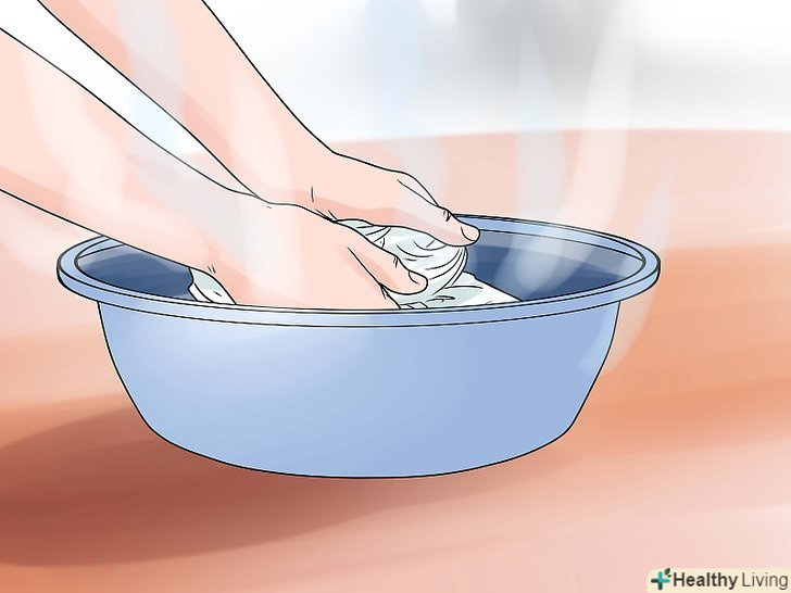 Виперіть річ в максимально теплій воді, температура якої допустима для даної тканини.- Деякі матеріали погано реагують на тепло, що призводить до усадки одягу або знебарвлення. Завжди читайте інструкції з прання на бирках.