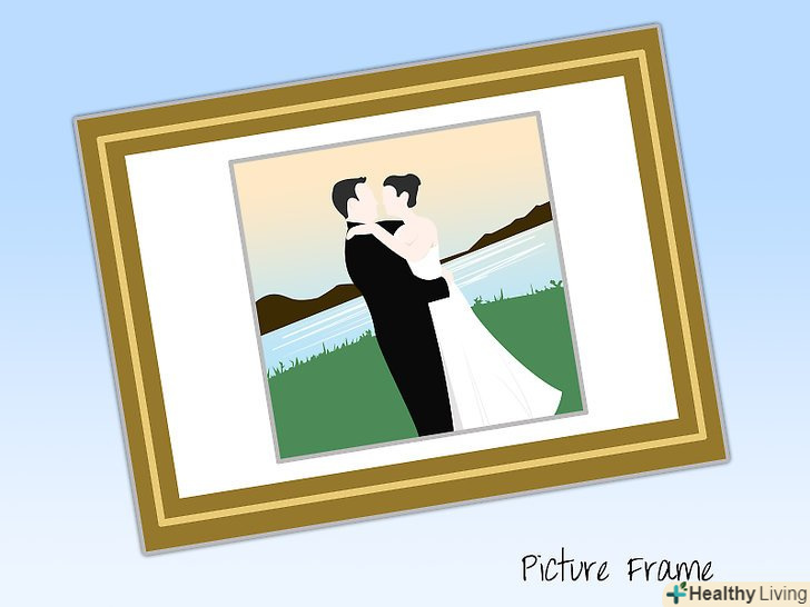 - Помістіть мереживний або сатиновий клаптик від вашого весільного плаття в рамку і повісьте на стіну. Якщо у вас є фотографії в рамках з Вашого весілля, підкладку перетягніть мереживом або сатином з Вашого сукні.