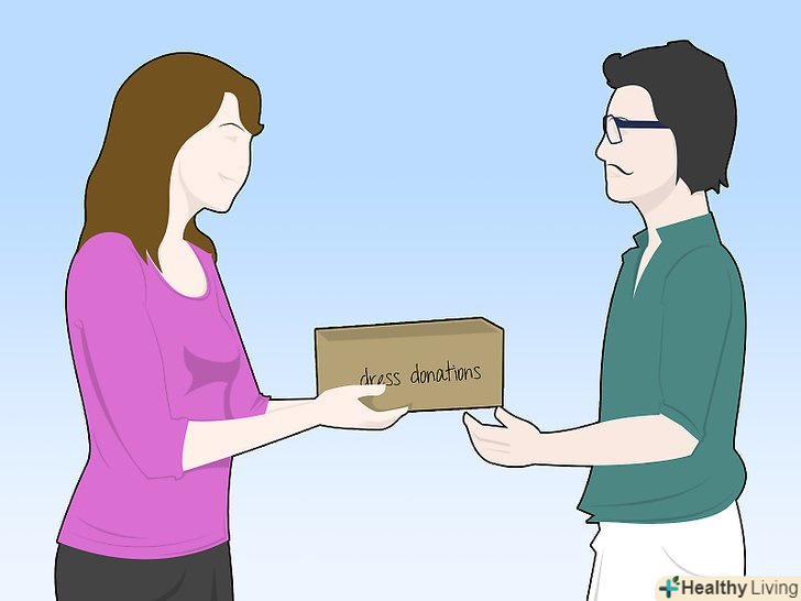 Пожертвуйте сукню на благодійність.- Пожертвуйте сукню благодійної організації з магазинами економ класу, в яких вони можуть перепродати сукню і заробити грошей на благодійні цілі. Ви не тільки допоможете нареченій, якій не по кишені дороге весільне плаття, але ви внесете свій внесок і в місцеву неприбуткову організацію.