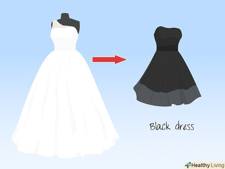 Пофарбуйте плаття, щоб урізноманітнити його стиль. ваш білий наряд може стати шикарним чорним платтям, спідницею або топом. Натуральні волокна, такі як сатин, шовк і органза, можна професійно пофарбувати. Але синтетичні матеріали типу поліестру і ацетату пофарбувати не можна. Перевірте тканину свого весільного плаття перед фарбуванням.