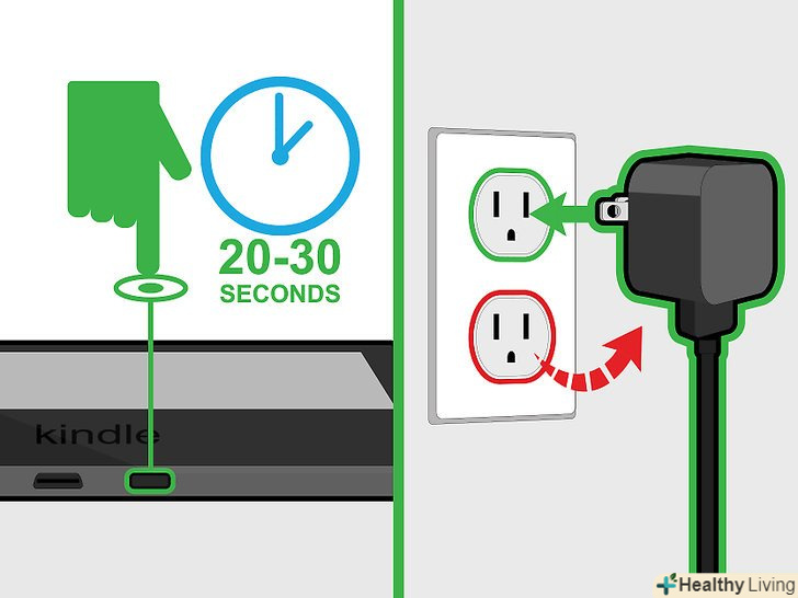 - Примусово перезавантажте Kindle-для цього утримуйте кнопку живлення протягом 20-30 секунд.