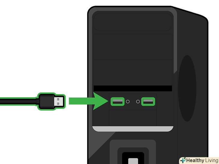 Вставте USB-штекер у прямокутний USB-порт комп'ютера.Пам'ятайте, що USB-штекер підключається до USB-порту тільки в одному напрямку, тому, якщо у вас не виходить вставити штекер в порт комп'ютера, поверніть штекер на 180 градусів і повторіть спробу.- Не всі USB-порти підтримують зарядку пристроїв. Якщо якийсь порт комп'ютера не заряджає Kindle, підключіть пристрій до іншого порту USB.