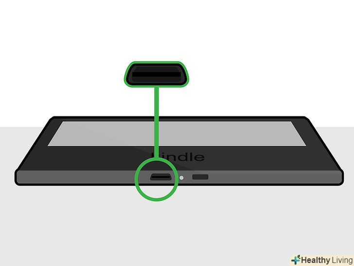 Знайдіть зарядний порт на Kindle.він знаходиться в нижній частині корпусу Kindle і виглядає як невеликий овальний роз'єм.