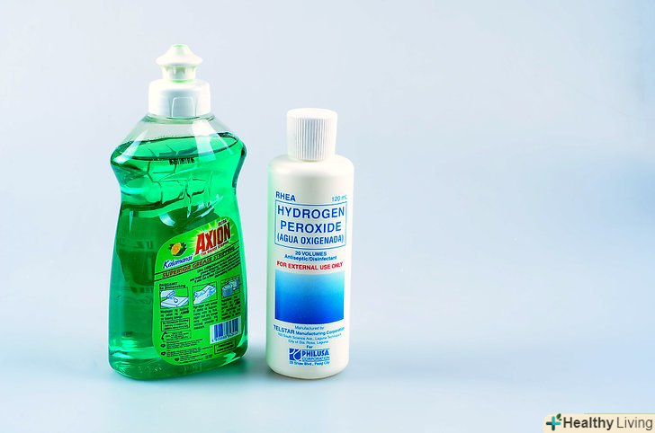 Змішайте 1 частину рідкого миючого засобу для миття посуду і 2 частини перекису водню в невеликій мисці, щоб зробити розчин.