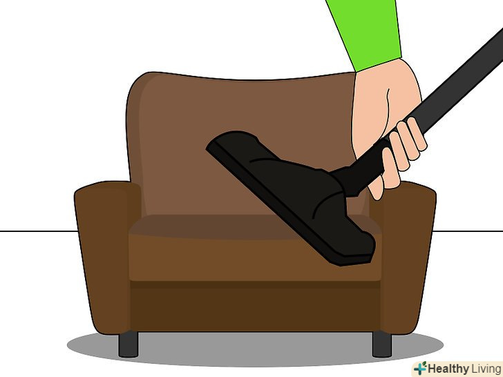 Зберіть кіптява пилососом з плоскою щіткою. Тримайте щітку над поверхнею шкіри, щоб не вдавлювати кіптяву в матеріал. [13]- Можна використовувати пилосос з фільтром HEPA, але це необов'язково.