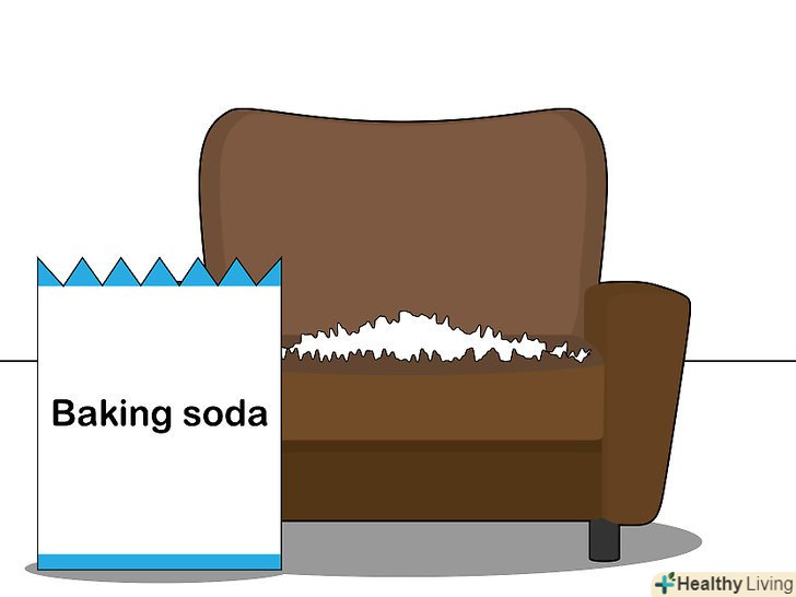 Присипте поверхню харчовою содою. залиште на 24 години, після чого зберіть пилососом і при необхідності повторіть дії. Харчова сода вбере запах диму. [20]