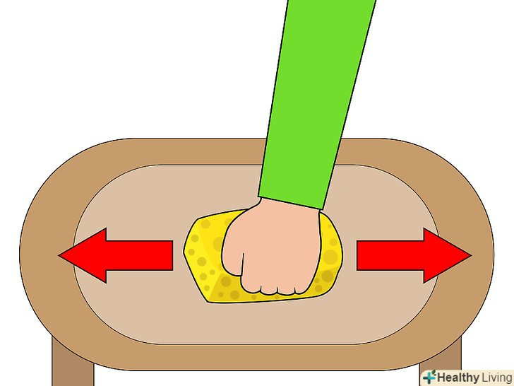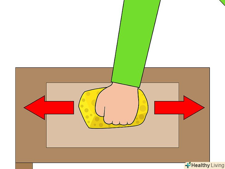 Зашліфуйте залишилися плями. необроблена деревина більш податлива, тому кіптява швидко проникає всередину. Якщо інші засоби не допомагають, обробіть пляму дрібнозернистим наждачним папером. [12]- Не використовуйте наждачний папір з обробленою деревиною, щоб не пошкодити покриття.
