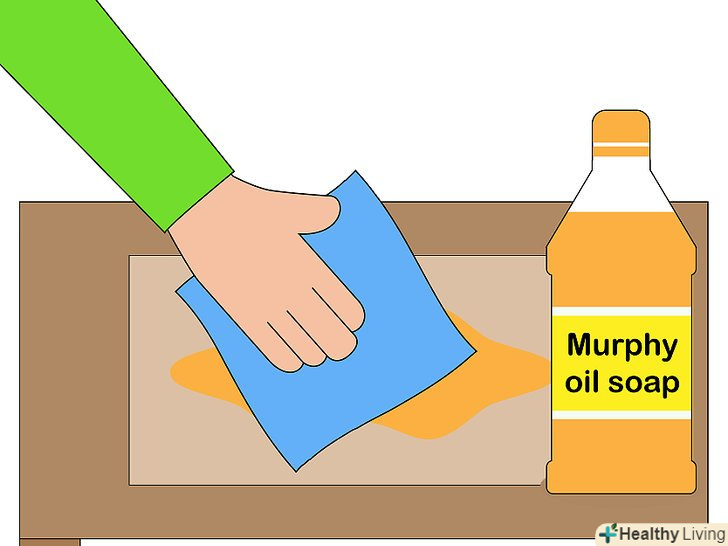Використовуйте слабкий розчин знежирюючого засобу і води. Якщо вам не вдається видалити жирну кіптяву, то розбавте невелику кількість знежирюючого кошти у великій мисці або відрі з водою і обробіть дерев'яну поверхню. Потім ретельно промийте вологою серветкою і насухо витріть м'яким рушником. [6]