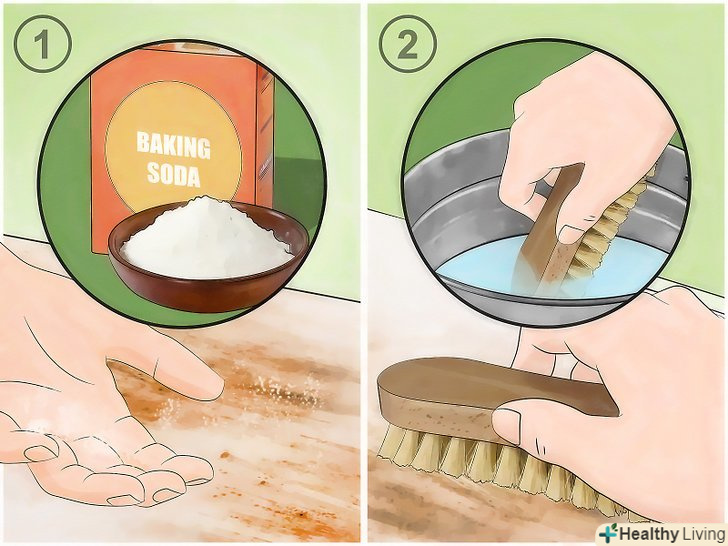 Використовуйте суміш випічки соди та води. харчова сода виїдає іржу. Нанесіть соду на поржавілий ділянку, а потім візьміть щітку, змочену у воді, і зішкребіть іржу з пофарбованої поверхні. Тільки тріть акуратно, щоб не нашкодити самій поверхні. [2]