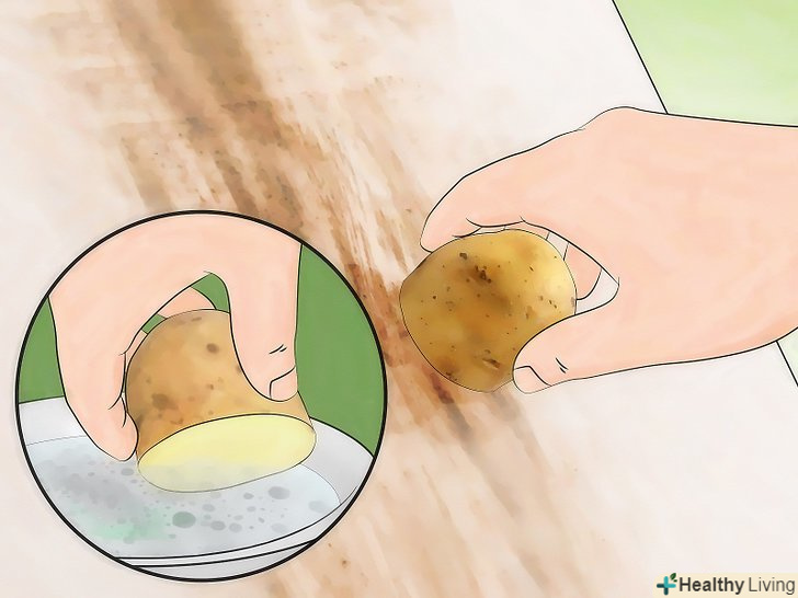 Потріть уражену ділянку засобом для миття посуду і картоплиною. якщо ви боїтеся нашкодити фарбованої поверхні або сама поверхня є крихкою, розріжте навпіл картоплину і занурте її в миску із засобом для миття посуду. Потім прикладіть половинку картоплі до пофарбованої поверхні і отскребите іржу. [3]- Через якийсь час можете зрізати верхній шар картоплі, знову опустити його в засіб і продовжити соскребать іржу.