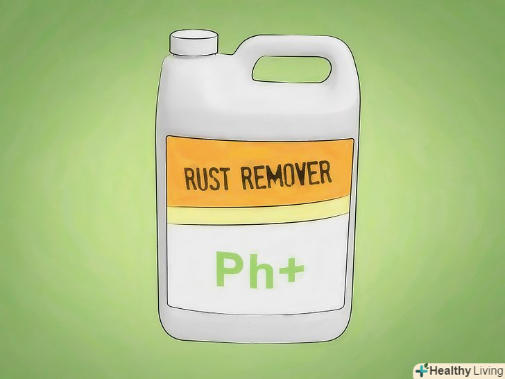 Використовуйте засіб для видалення іржі з низьким вмістом кислоти. через кислоти фарба може потьмяніти або зовсім відпасти. Щоб не нашкодити пофарбованої поверхні, постарайтеся використовувати засіб для видалення іржі з нейтральним або високим показником рН, тобто з помірною і низькою кислотністю. Пошукайте засіб для видалення іржі з нейтральним показником рН в місцевому господарському магазині. [5]
