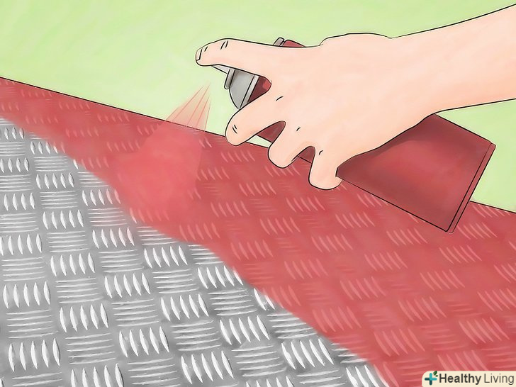 Нанесіть грунтовку на робочу область. Грунтовку Ви зможете придбати в місцевому господарському магазині або в магазині фарб. Ґрунтовку використовують для того, щоб зупинити поширення іржі і перешкодити їй і далі руйнувати пофарбовані поверхні. [6]