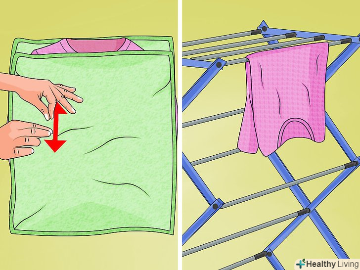 Надайте светру правильну форму. покладіть светр на махровий рушник. Руками надайте йому правильну форму. Потім накрийте светр другим рушником і відкладіть в сторону сушитися. [2]