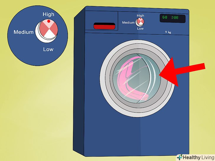 Просушіть светр в сушильній машині. щоб помітно посадити светр цілком, його буде необхідно висушити в сушильній машині. Покладіть мокрий светр в сушильну машину і включіть сильне нагрівання. В даному випадку потрібно виставити максимально можливий рівень нагріву, особливо якщо ви хочете сильно посадити светр. Залиште сушарку працювати до тих пір, поки светр не висохне повністю. Після цього він повинен стати на пару розмірів менше. [5]