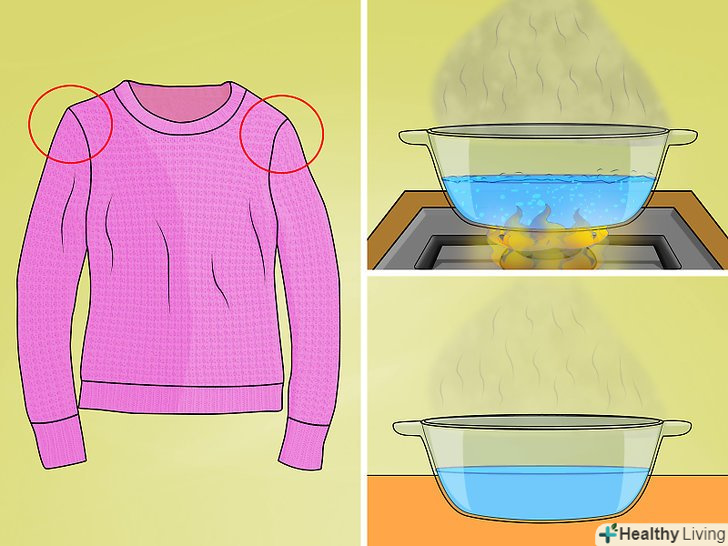Підготуйте ємність з гарячою водою. якщо у светри розтягнулися лише окремі ділянки, наприклад, горловина або рукава, то можна посадити до потрібного розміру тільки їх. Для цього вам буде потрібно закип'ятити воду в каструлі середніх розмірів. Потім перелийте окріп в миску. [6]
