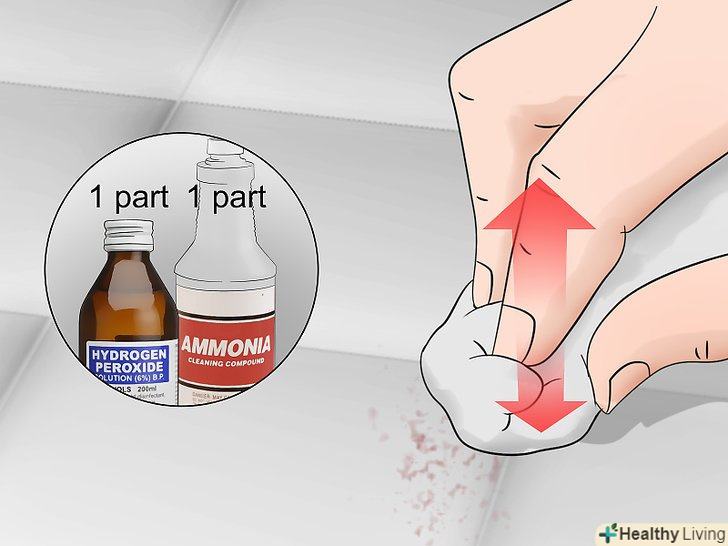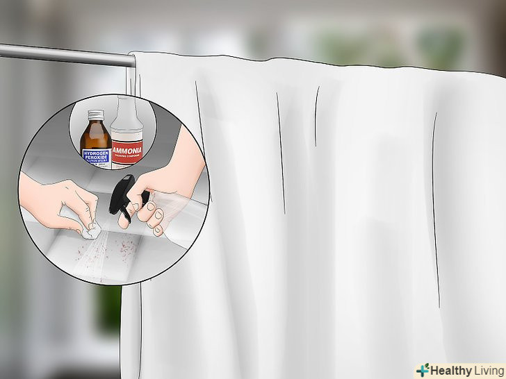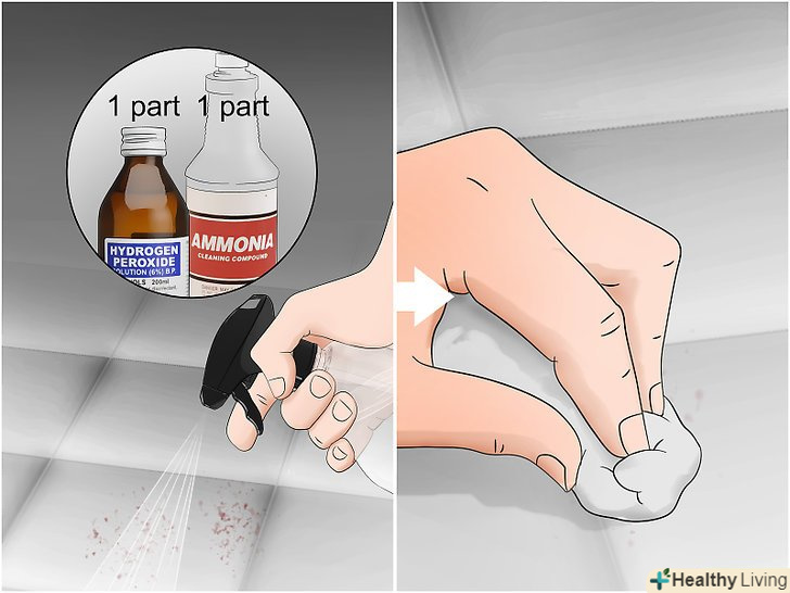 Точково обробіть залишилися плями сумішшю перекису водню і нашатирю. перш ніж застосовувати перекис, врахуйте, що іноді вона може освітлити колір тканини. Якщо після прання на білизні залишаться плями, нанесіть на них рівну кількість перекису і нашатирю і промакивайте чистою ганчіркою до тих пір, поки вони не відійдуть.- Щоб запобігти передчасному зносу тканини, промакивайте плями всього лише близько 10-15 хвилин. Довший період впливу призведе до пошкодження тканини. [8]