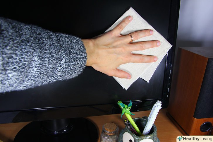 Протріть екран м'якою серветкою без ворсу, щоб видалити розлучення і відбитки пальців. можна використовувати серветку з мікрофібри або м'яку чисту ганчірку з бавовни. Акуратно протирайте екран круговими рухами, щоб позбутися від пилу. Зазвичай цього достатньо, щоб видалити весь бруд з екрану. [2]- Не протирайте екран серветкою з деревних матеріалів (паперові рушники, туалетний папір, носові хустки), щоб не подряпати поверхню. [3]