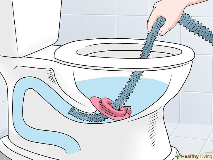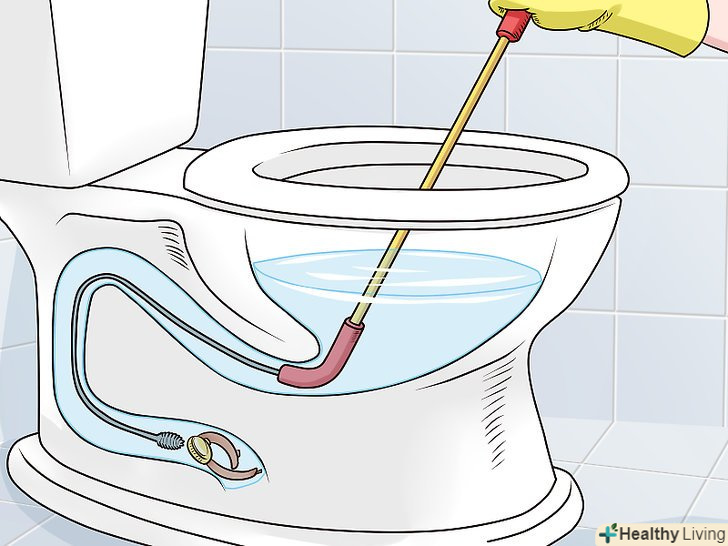 Купіть або позичте трос для прочищення труб. такий трос (також називається "гнучкий вал", "їжачок") являє собою гнучку дріт, яка може проникати в повороти зливних труб глибше жорсткої дроту. Найкраще використовувати шнековий трос, який дозволить видалити засмічення і при цьому не пошкодити і не забруднити унітаз . Практично всі Слюсарі використовують такий трос. [7]