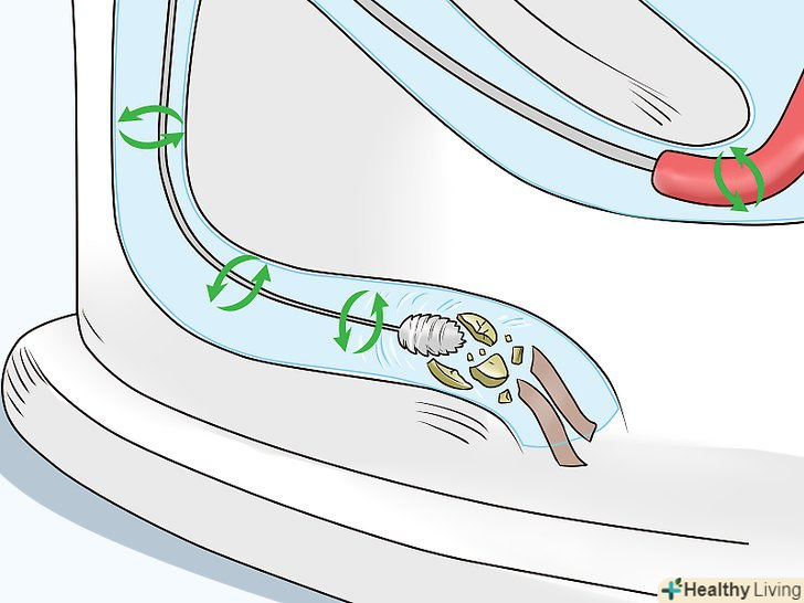 - Розправлені плічка і трос для прочищення труб можуть легко подряпати керамічний унітаз. Дійте обережно, щоб не пошкодити хоча б видиму частину. Кінця дроту з плічок, який потрібно вставити в отвір, щоб "виловити" засмічення, слід надати форму гачка за допомогою плоскогубців, а потім обмотати його ізоляційною стрічкою. Дуже обережно просуньте гак, щоб підчепити сміття або іграшку, а потім акуратно витягніть одним безперервним рухом.