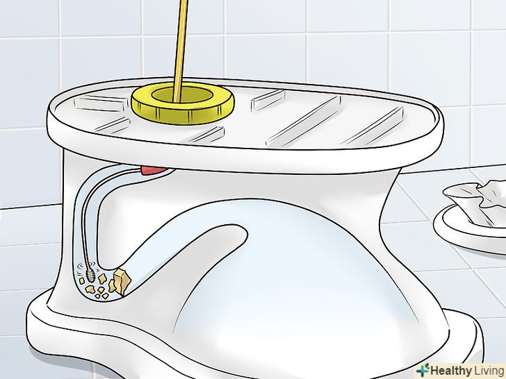 - Виконайте прибирання після прочищення. Продезінфікуйте унітаз знезаражувальним засобом. Викиньте дріт, продезінфікуйте або викиньте гумові рукавички та інші предмети (вантуз або трос). На брудних інструментах можуть бути мікроби, які виділяють неприємний запах. У вантузі (особливо з розкладним бортиком) може залишатися вода. Утримуйте його над унітазом, розкрийте і акуратно витрусіть воду, щоб не забризкати підлогу.