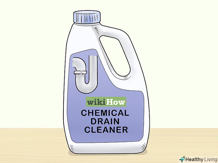 Купуйте хімічний очищувач водостічних труб. цей продукт можна придбати в більшості продовольчих і господарських магазинів, а також в гіпермаркетах. Використовуйте цей метод тільки як останній засіб. Хімічні речовини в таких продуктах токсичні для людини і тварин, а також руйнують труби. Чистячі засоби з хлором також небезпечні для навколишнього середовища. [9]- У випадку з твердим предметом не потрібно використовувати хімічний розчин. Краще використовувати трос або викликати слюсаря-водопровідника.