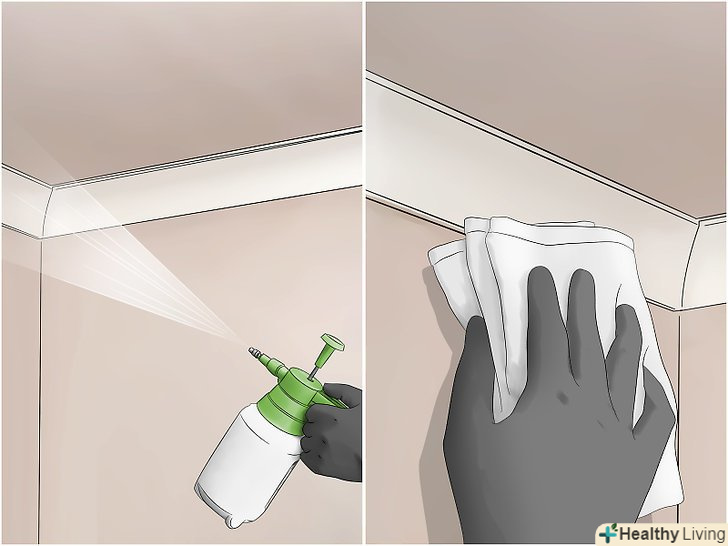 - У приміщенні великий розпилювач може виявитися занадто потужним. Просто змішайте воду та відбілювач у невеликому аерозольному флаконі. При роботі з відбілювачем використовуйте захисні рукавички, щоб не пошкодити шкіру. [10]