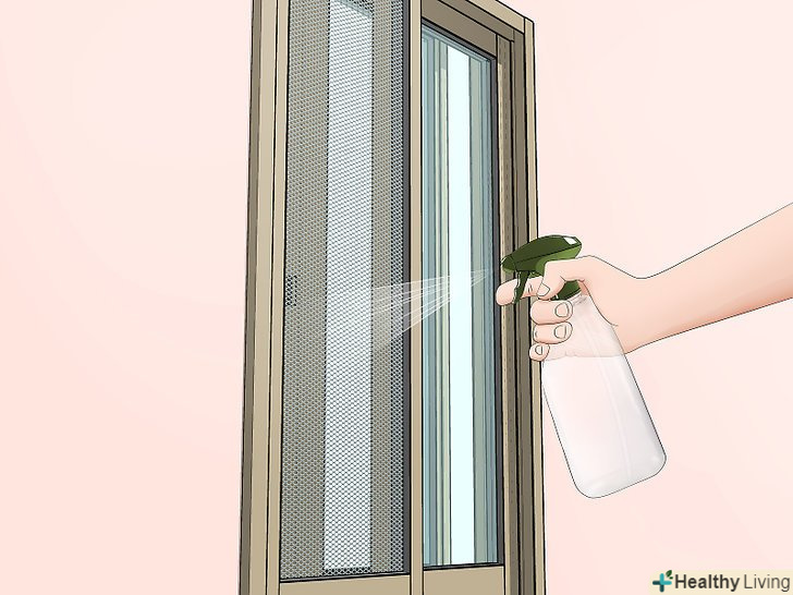 Обробіть вікна та сітки. павуки часто плетуть павутину в кутах вікон, влаштовуються між вікном і москітною сіткою. Якщо ви хочете позбутися від павутини в таких місцях, то дотримуйтесь вказівок по очищенню старих вікон. Розпиліть воду на вікно і сітку за допомогою садового шланга або аерозольного флакона.- Якщо ви хочете розпилити воду з вулиці, використовуйте садовий шланг з насадкою. Вимийте сітку від павутини. Якщо потрібно розпорошити воду в приміщенні, то підійде самий звичайний аерозольний флакон. [5]