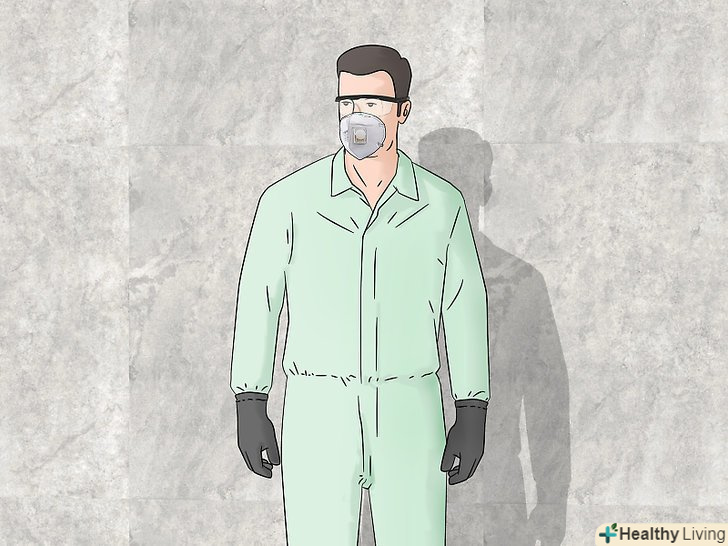 Використовуйте засоби індивідуального захисту. Відбілювач небезпечний для шкіри і очей, тому не забудьте надіти захисні засоби до початку роботи. Буде потрібно спеціальний одяг, окуляри і рукавички. [14]