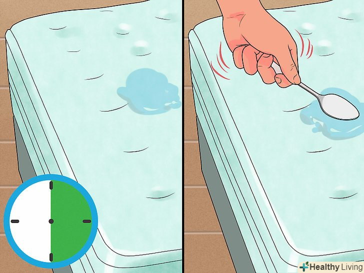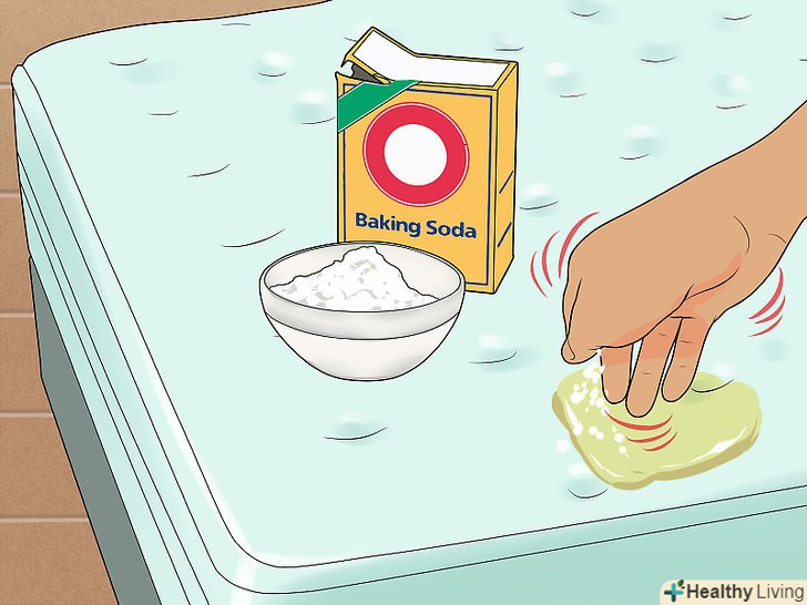 Посипте пляму харчовою содою, щоб в неї вбралася залишилася сеча. зачерпніть повну ложку соди і посипте нею все пляма. Не бійтеся використовувати занадто багато засобу, так як воно не зашкодить матрац. Переконайтеся, щоб всі частини плями були покриті харчовою содою. [2]
