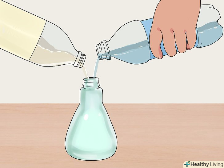 Змішайте одну частину білого оцту і одну частину води в пляшці з розпилювачем. налийте воду і білий оцет прямо в пульверизатор. Використовуйте максимально велику ємність, яку тільки зможете знайти, так як, в залежності від розміру плями, вам може знадобиться багато розчину. [3]- Щоб зробити розчин ефективніше, скоротіть кількість води або виключіть її зовсім. Немає нічого страшного в тому, щоб розпорошити нерозбавлений білий оцет на матрац. Незважаючи на те, що він має різкий запах, цей запах розсіється.