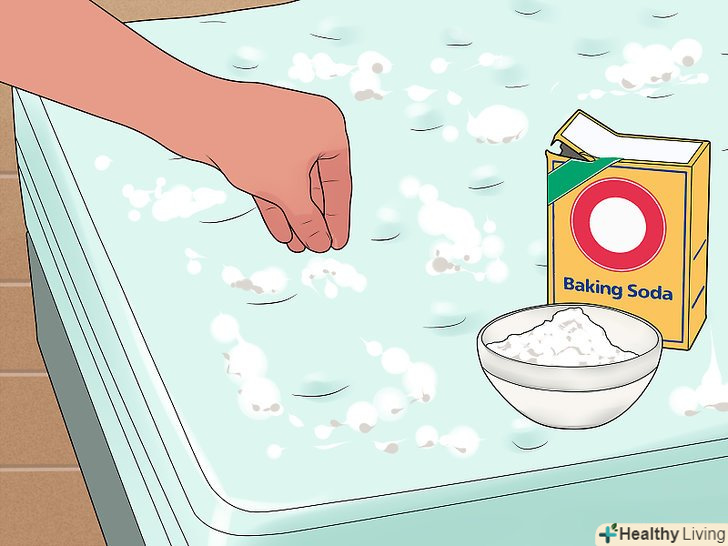 Посипте харчовою содою всю верхню частину матраца. рясно нанесіть ще харчової соди на матрац і постарайтеся покрити якомога більшу зону. Це також дозволить видалити будь-які інші запахи з матраца. [6]