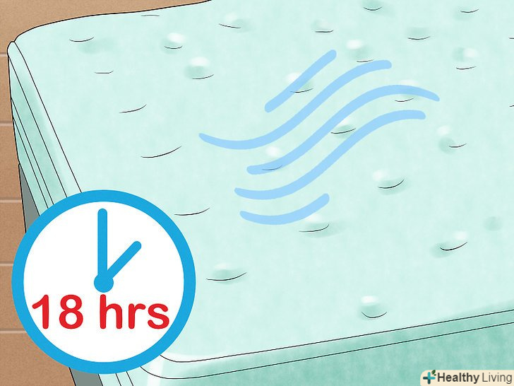 Залиште матрац сохнути приблизно на 18 годин, перш ніж його пилососити. відкрийте всі вікна і двері і по можливості залиште вентилятор включеним в кімнаті. Через 18 годин переконайтеся, що матрац повністю висох, а потім пропилососьте його, щоб видалити харчову соду. Пройдіться пилососом по всіх загинах і вм'ятин в різних напрямках, щоб нічого не залишилося. [7]- Матрац не можна використовувати, поки він сушиться, а харчова сода робить свою справу.