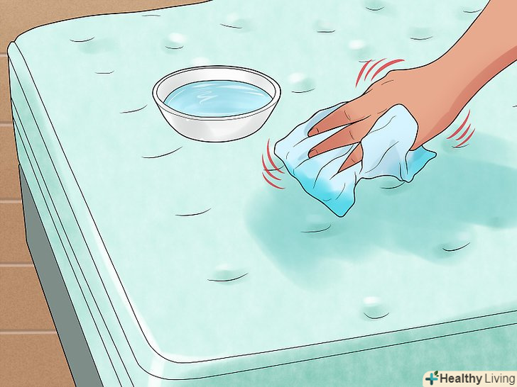 Промокніть пляму розчином з перекису водню. злегка змочіть в розчині білу ганчірку. Ретельно промокніть пляму, щоб вивести його, і почекайте, поки матрац повністю висохне, перш ніж використовувати його знову. [11]- Незважаючи на те, що розчин слід використовувати щедро, намагайтеся не сильно мочити матрац, інакше він буде довше сохнути.