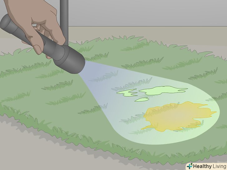 - Інші субстанції, включаючи тілесні рідини і такі напої, як тонік, теж можуть світитися. Орієнтуйтеся на розташування, розмір, форму і запах плями, щоб зрозуміти, що це пляма котячої сечі. [5]