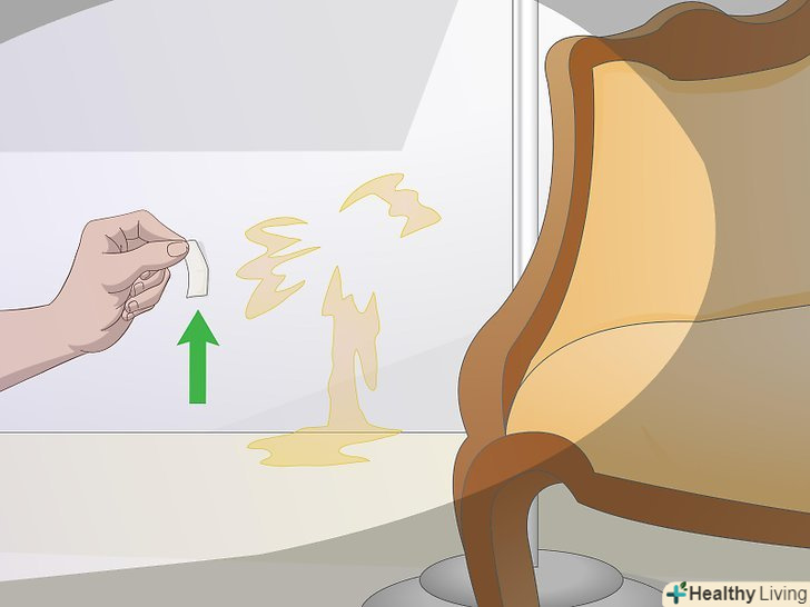 Відзначте межі плями, щоб потім знати, де його шукати. ймовірно, вам буде важко точно запам'ятати положення, розмір і форму плями, коли ви включите нормальне освітлення. Щоб безпомилково відзначити те місце, яке вам необхідно почистити, скористайтеся скотчем або крейдою, окресливши периметр плями. [7]- Непогано буде зачистити дещо більшу площу поверхні, ніж ту, що ви помітили в світлі ультрафіолету, на той випадок, якщо пляма вбралося і розтеклося всередині. З цієї причини не варто переживати про точне визначення меж плями. Просто поставте для себе невеликі мітки зверху, знизу і з боків забрудненого місця, щоб знати його розташування.