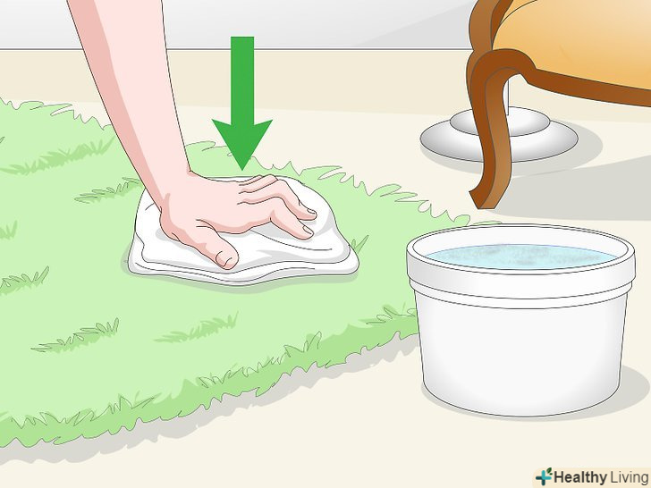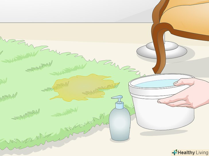 Якщо можливо, розмочіть пляму мильною водою. якщо пляма розташовується на такому матеріалі, який можна безпечно намочити, наприклад на килимі , додайте в теплу воду кілька крапель миючого засобу для посуду, а потім намочіть цим розчином все пляма. Залиште пляму в такому вигляді приблизно на годину. Це допоможе послабити зчеплення кристалізованої котячої сечі з поверхнею. [9]