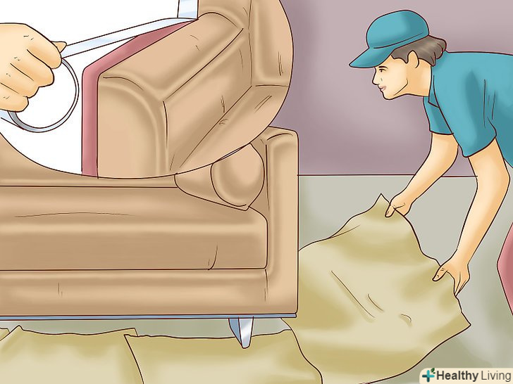 Підстеліть тканину, плівку або брезент. це дозволить захистити підлогу, стіни і сусідні предмети від слідів фарби.- Якщо ви не хочете фарбувати такі елементи шкіряних меблів, як ручка нахилу спинки, кнопки і декоративні прикраси, покрийте їх малярською стрічкою або паперовими рушниками.