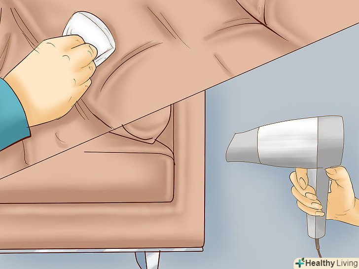 Очистіть диван. за допомогою слабкого розчину рідини для посуду і води видаліть бруд, наліт і жировий шар. Використовуйте 5 крапель рідини для посуду на пляшку води. Струсіть пляшку, змочіть ганчірку або паперовий рушник, потім м'яко протріть шкіру.