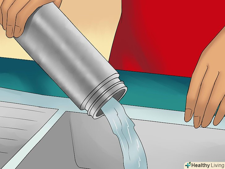 Для очищення пляшки використовуйте оцет. заповніть пляшку з нержавіючої сталі білим оцтом приблизно на 1/5 свого обсягу. Решту простору заповніть водою. Залиште пляшку настоюватися протягом ночі. Вранці вилийте з пляшки розчин оцту і води. Ретельно промийте пляшку водою, а потім поставте її догори дном на стійку для посуду, щоб просушити. [7]