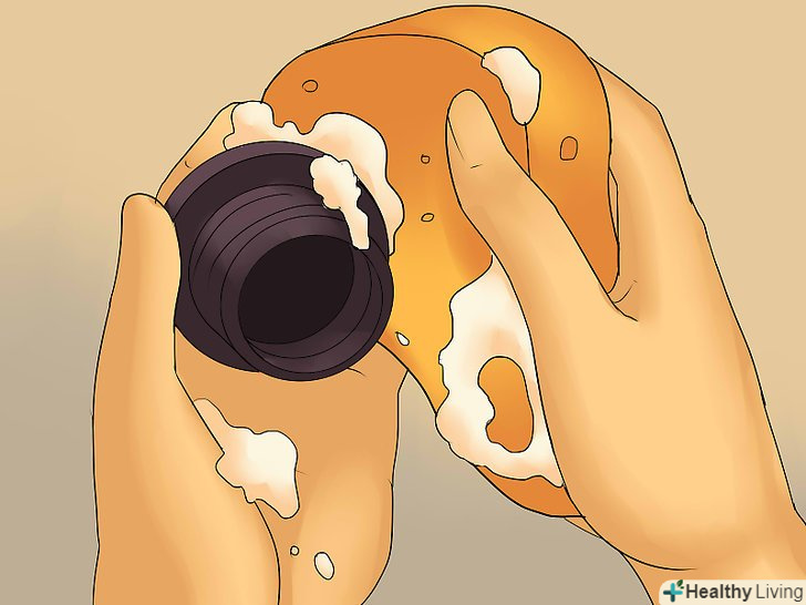 Протріть краї. якщо у пляшки з нержавіючої сталі є відгвинчується кришка, не забудьте протерти гвинтову нарізку на шийці пляшки. Змочіть губку в мильній воді і протріть нею з внутрішньої і зовнішньої частини горлечка пляшки. Пройдіться губкою уздовж горлечка пляшки кілька разів, щоб промити її. [4]